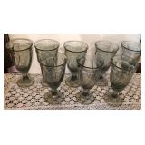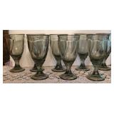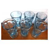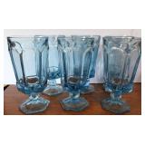 | 6 Light Blue Fostoria "Virginia" Paneled Footed Iced Tea Glasses - 7" Tall |