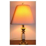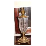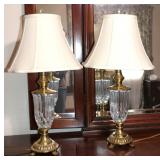| Pair of Beautiful Berman and Co. Brass and Crystal Table Lamps - Nice Cream Shades - Crystal Finials - Each Lamp is 24" Tall |
