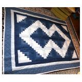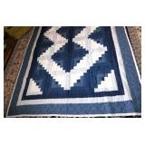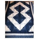 | Contemporary Blue and White Quilt - Hand Quilted - Measures 93" by 74" |