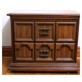 | 1970's Plastic Wood "Pecan" Night Stand - 2 Drawers - 23 1/2" Tall 26" by 18" |