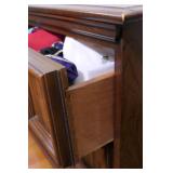 | Athen Furniture -Mahogany Finish Dresser with 3 Way Mirror - Mirror Has a Broken Arch Pediment - Dresser Base with Dentil Molding - 8 Drawers - Dresser Base is 32" Tall 64" By 18" - Made in North Carolina |