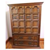 | 1970's Plastic / Faux Wood Chifforobe - 2 Doors with Divided Interior and Drawers Over 2 Drawers - NO CONTENTS - Measures 58" tall 39" by 19" |
