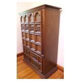 | Walnut Gun Cabinet Handmade by Person County NC Cabinet Maker E.J. Terry -Glass Door over 2 Drawers Over 2 Blind Doors - Interior with Gun Rests - Broken Arch Pediment - Cabinet Measures 89 "Tall 31 1/2" By 17 1/2" - NO CONTENTS |