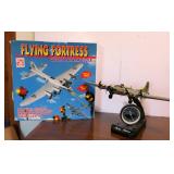 | Flying Fortress Quartz Alarm Clock - Propellor Turning, Headlights Glow, Realistic Plane Sounds - Made in Japan - With Original Box |