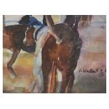 | Watercolor Fox Hunt Scene - Framed and Matted - By V. Wellman - 1987 - Framed and Double Matted - Frame Measures 32" By 38" |