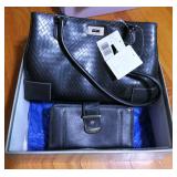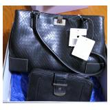 | Liz Claiborne Black Purse - New with Original Hang Tags and Etienne Angier Black Leather Wallet - Minimal Use |