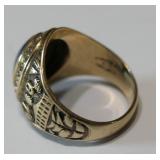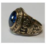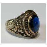 | 10kt Yellow Gold Roxboro High School 1955 Class Ring - 9.3 Grams - With Blue Stone |