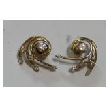 | Pair of 14kt Yellow Gold Diamond Stud Earrings with Gold Jacket with Diamond Accents - 2.4 Grams Total Weight |