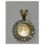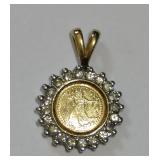 | Little Standing Liberty Panda Bear Gold Coin in NOT Gold Bezel - Coin Measures Approx. 1/4" Across - With Bezel 3.4 Grams Total Weight |
