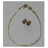 | 14kt Yellow Gold Bracelet and Stud Earrings - 1.3 Grams Total Weight |