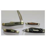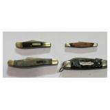 | 4 Pocket Knives - Schrade 3 Blade, Kamp King - 1 Blade is Broken, Old Timer 12-OT with 1 Blade, and Small Buck 375-1 |