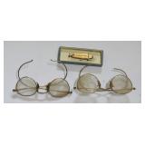 | 2 Pairs of Antique Gold Filled Spectacles and Hayward Gold Tone Mini Pocket Knife - Knife is 1 1/4" Long |