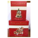 | 2 Fitz and Floyd Holiday Musical Christmas Music Boxes - "Gifts From Santa" Tune We Wish You A Merry Christmas and "Santa's Classic Car" Tune We Wish You A Merry Christmas - Both New In Original Boxes |