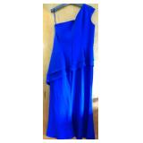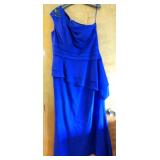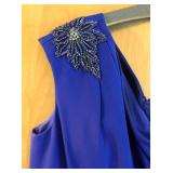 | Beautiful Cobalt Blue Evening Gown - One Sholder with Beaded Floral Embellishments - Ruffled Details Around Waist - Size 16 - Small Stain on Ruffle |