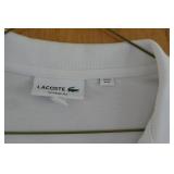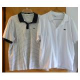 | 2 Lacoste Polo Shirts - White Classic Fit Size XL and Blue Striped "8" - No Size Given |