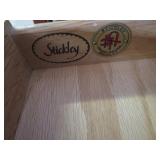 FURNISHINGS: MORE Stickley! Stickley 9 drawer chest; Stickley 2 drawer sofa table; Stickley buffet with door detailing; Stickley small tables; Henkel Harris corner cabinet; Beautiful bowfront sideboard; Serpentine front 12 drawer chest; Nice buffet with brass pulls; Leather 2 section sofa with accent pillows; Chinese altar design server with brass adornments; Arts & crafts occasional table; Oak & leather Morris chair; Lingerie chests; Chest on chest highboy with broken arch; Coffee table with ball & claw feet and 2 matching end tables; Arts & Crafts hall table; Oak dresser with hat compartment; Arts & Crafts Grandma & Grandpa oak rocking chairs; Chinese altar design double door cabinet; Federal sideboard; Bowfront chest of drawers; Wonderful angled front display cabinet with brass detailing; Pair of one drawer end tables with shelves; Oriental style china cabinet with brass; Old step-back china cabinet with lots of carved embellishments; 3 drawer end table; Set of 4 bar seats; Hickory Chair Queen Anne oval dining table with 8 chairs & leaves; Woven seat rocker; Hall table; Pair of oval end tables; Fern stand; Marble top plant stand; MCM dining table and 6 chairs; Mixed wood 3 drawer table; Really nice parlor set with striped upholstery (sofa, love seat & chair with accent pillows); Rolling tea cart with removable top tray; Marble top metal stand; Side table with drawer; Bed; Pair of 1 drawer end tables; Small chest; Lots of brass table lamps; Set of wooden TV trays with stand; Brass & glass coffee table; Planter stand; Pair of stools; Armchair; Candle table; Birthing seat; Wine rack; Decorative metal miniature sleigh; Dining table With leaves & 6 chairs; Vanity with tri-fold mirror; Dresser; Oak 2 drawer file cabinet on legs; Heavily carved marble top server; Blue painted two seat bench with cushion; Marble top tables; Armchairs; Oriental style server with lots of brass; Needlepoint footstool; Round side table; Small blanket box; End tables; 4 drawer chest with metal accents; Leather top drum table; Leather top small side table; Oak table; Rocking chairs; Padded footstool; Sewing box; Padded double arm bench; Round table with brass rail; Half round table; End table with leather top; Pair of oak open bookshelves; Brass kindling holder with feet; Fireplace tools set; Floor lamps; Shaving mirror with drawer; Metal & wood baker’s rack; Cedar hope chest; Ornate wall clock; Fine Oriental rugs, runners & carpets; Lots & lots of great table lamps; Crystal lamps; Ceramic lamps; Boudoir lamp; Stick lamps; Double arm lamp; Set of nesting tables; Piano stool with Ball & claw feet; Brass floor lamp; Rattan glass top round table; Display top table; Calendar clock; Bullseye mirror with eagle; More mirrors; Hanging lights; Mantel clocks; Outdoor furniture; Tile top tables and lots, lots more!