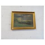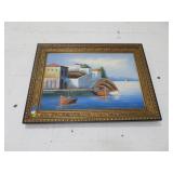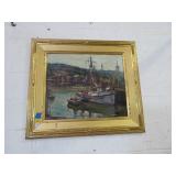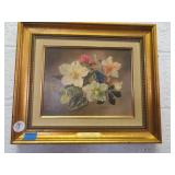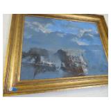ART & METALS: Impressionist sailboats & houses signed painting; Flowers of Britain by John Lancaster, ca. 1960; Colorful painting of wall; Steamships in port artwork; Abstract; Mediterranean seaside; Floral art; Lake edge artwork; Vase of roses still life; Dog portraits; Stained glass panel; More signed artworks; Prints; More ship artworks; Painting of peonies; Sheep in pasture; Large abstract; Small bust; Figurines; Carved wooden figures; Buddha; Elephant carving & statue collection; Face plaques; Flatware in case; Metal foo dog pair; Brass rocking horse candlestick; Pig; Metal flying geese statue; Running horses statue; Pair of 4 arm candelabras; Butter dome; Silver rim coaster; Silver goblet set; Silver champagne cups; Cobalt bulbous vase with silver overlay; Crystal centerpiece bowl on silver rearing horse base; Metal vases; Brass candlesticks; Silver trays; Compote; Rabbit triple condiment holder; Rabbit bowl server & more!