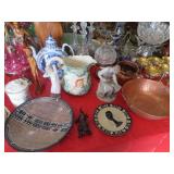 MORE: Set of mounted longhorns; Globe; Huge hammered copper bowl with brass handles; Huge hammered copper floor urn on base; Metal compartmentalized flower seller’s bucket; Brass floor candlestands; Large copper bowl with handles; Large cinnabar vase; Barometer; More copper bowls; Basket of fairy figures; Decorative boxes; Cheese tins; Stone vases; Decorated gourd; Crystal specimens; Bose radio; Coffee set on tray; Bookends; Binoculars; Insulator lamp; Smoking pipe; Cameras lenses & filters; Stein; Stone cherry tree; Wrought iron outdoor furniture; Tile top tables; Garden bench; Patio sets; Metal outdoor tables; Cast iron garden seats, tables & planters; Concrete planter; Bell with cradle; Garden art; more to come!
