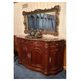 marble top night stands, mirrored wardrobe and long dresser with mirror,