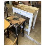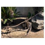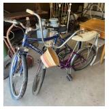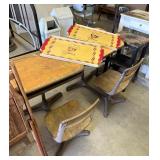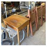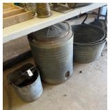galvanized washtubs and cans, 2 bicycles, old school desks,