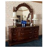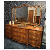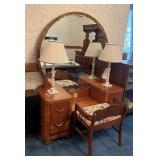 2 night stands, long dresser with mirror, highboy, and vanity,
