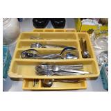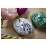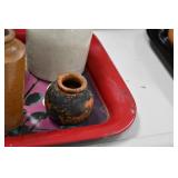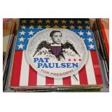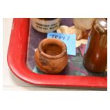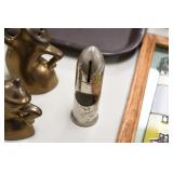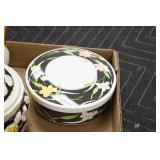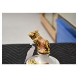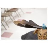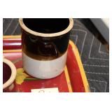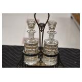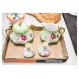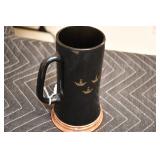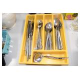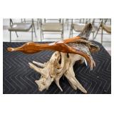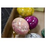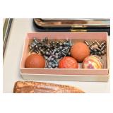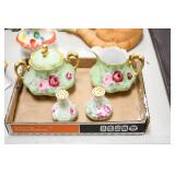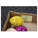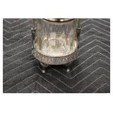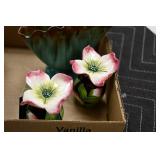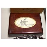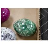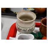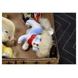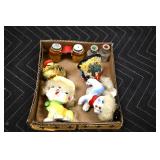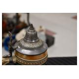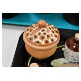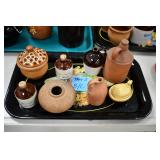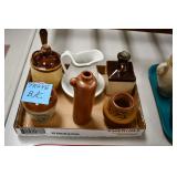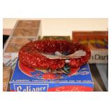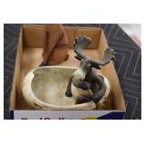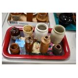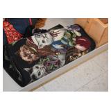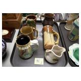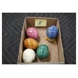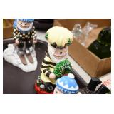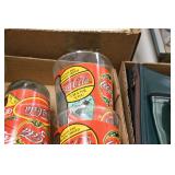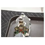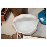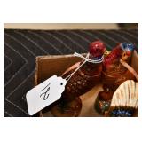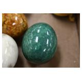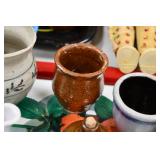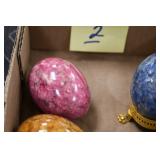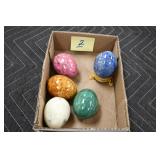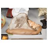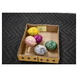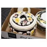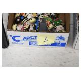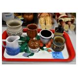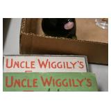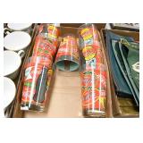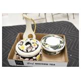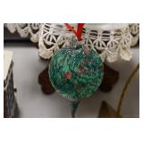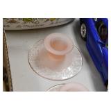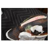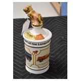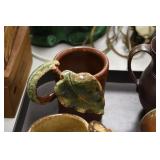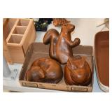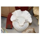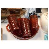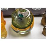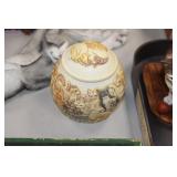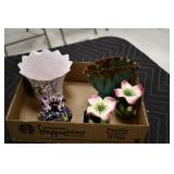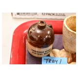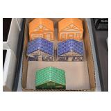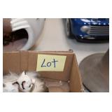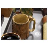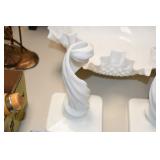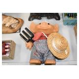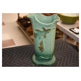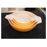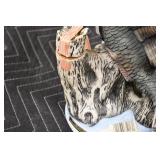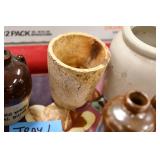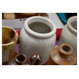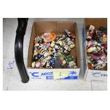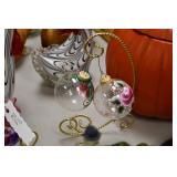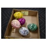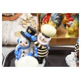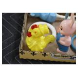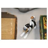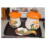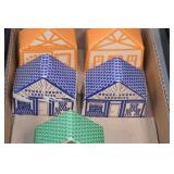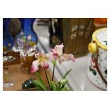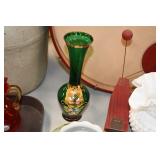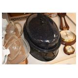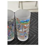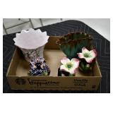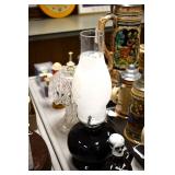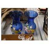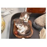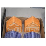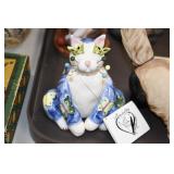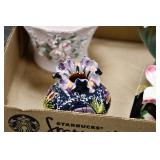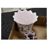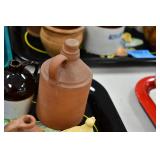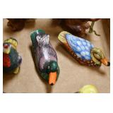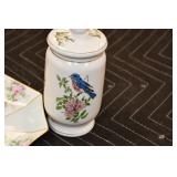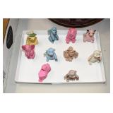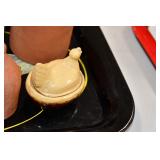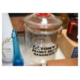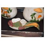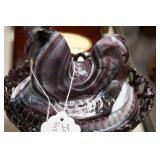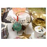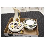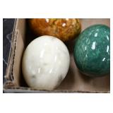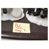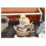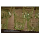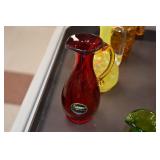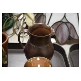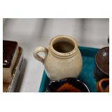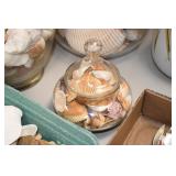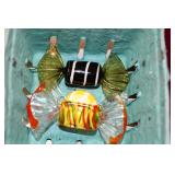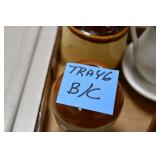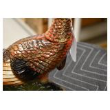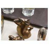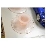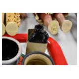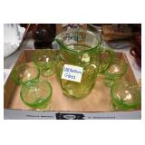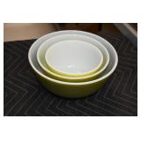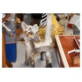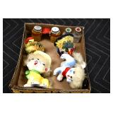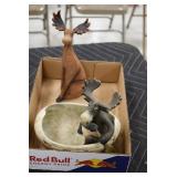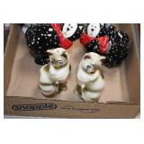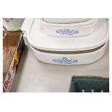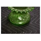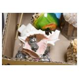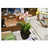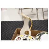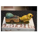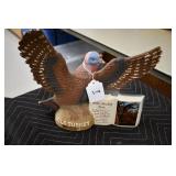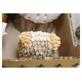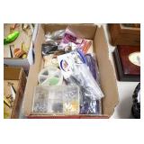 Antique Glassware: Wild Turkey and Other Decanters, Carnival Glass Buttons, Art Glass Chickens, Wildlife Pitcher and Water Glass Set, Uranium Glass, Corning Kitchenware, Pyrex, Vintage Cat Glass Figures, Decorative Glass Vases, Milk Glass, Blue Ball Jars, and Other