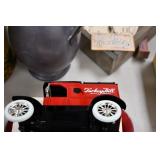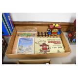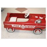 Collectible Toys: Fire Chief Pedal Car, Vintage Wooden Childs Toys, Collectible Tractor Trailers, Antique Cars, Miniature Pac-Man Machine, Hess Trucks, Classic Collection Miniature Toy Cars, Skydiver Sport Toy Airplane, Thomas and Friends Water Tower Steam Set, Big Loader Construction Set, Capsela Motorized Construction Set, and Other