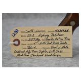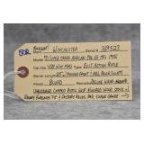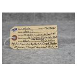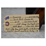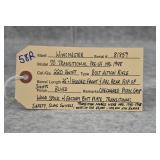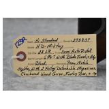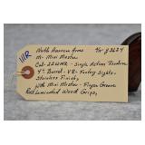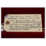 Firearms #219-452 To Sell at 10:00 AM (Approx.) 219R. Winchester – Mod. 42 Trap Grade Skeet 2nd Variation – 410ga. Pump Action Shotgun – w/26” Skeet Choked Barrel – Blued Finish – w/Checkered Straight Grip Butt Stock w/2 Diamonds in Center of Checkered Forearm, One Closed Diamond on Underside of Checkered Straight Grip w/Factory Butt Plate – Only 231 Mfg. in This Configuration! – Note: Small Chip on Butt Plate, Condition Issues 220R. Browning – Mod. A5 Magnum Twelve – 12ga. 3” Semi-Auto Shotgun – w/24” Mod. Choke Barrel w/Rifle Sights – Blued Finish – w/Checkered Round Knob Pistol Grip Wood Stocks w/Factory Butt Pad 221. Browning – Mod. Auto-5 – 12ga. 3”, 28” Vent-Rib, Interchangeable Choke Barrel Only 222R. Remington – Mod. 11 Autoloader (Browning Pat.) – 12ga. Semi-Auto Shotgun – w/28” IM Choked, Barrel w/Bead Sight – Blued Finish – w/Round Knob Pistol Grip Wood Stocks w/White Line Butt Pad 223R. Browning – Mod. A-Bolt Medallion – 7mm Rem. Mag. Cal. Bolt Action Rifle – w/26” Barrel w/BOSS – Blued Finish – w/Engraved Floor Plate & Receiver – w/Checkered Pistol Grip Wood Stock w/Rose Wood Pistol Grip Cap & Forend Cap w/Browning Butt Pad – w/Detachable Mag – w/2pc. Scope Rings & Bases 224R. Westernfield – Mod. 550 AR – 12ga. Pump Action Shotgun – w/26” Vent-Rib Barrel w/Bead Sight & C-Lect Adj. Choke – Blued Finish – w/Enhanced Receiver on Both Sides w/Hunting Scenes – w/Checkered Capped Pistol Grip Wood Stocks w/Factory Butt Pad 225R. Ruger – Mod. 77 (Tang Safety) – 7mm Rem. Mag. Cal. Bolt Action Rifle – w/24” Barrel – Blued Finish – w/Checkered Capped Pistol Grip Wood Stock – w/Ruger Rings – w/Bushnell Banner 3x-9x Duplex Reticle Scope 226R. J.C. Higgins – Mod. 583-14 – 16ga. Bolt Action Shotgun – w/22” Cyl. Choke Barrel w/Bead Sight – Blued Finish – w/Smooth Pistol Grip Wood Stock w/Butt Pad 227R. Savage – Mod. Axis – 223 Rem. Cal. Bolt Action Rifle – w/22” Barrel – Matte Blued Finish – w/Mossy Oak Camo Synthetic Stock – w/Weaver 3x-9x Duplex Reticle Rifle Scope – w/Magazine – w/Manual & Extras 228R. Shapleigh’s King Nitro – 22 Cal. Bolt Action Rifle – w/22” Barrel w/Blade Front & Adj. Rear Sights – Blued Finish – w/Smooth Pistol Grip Wood Stock w/Brass Butt Plate 229R. J.C. Higgins – Mod. 101.25 – 410ga. 3” Bolt Action Shotgun – w/24” Barrel – Blued Finish – w/Smooth Wood Pistol Grip Stock w/Factory Butt Plate – w/Tubular Mag – Note: Pinned Stock 230R. Remington – Mod. 700 BDL – 30-06 Sprg. Cal. Bolt Action Rifle – w/22” Barrel w/Ramp Blade Front & Adj. Rear Sights – Blued Finish – w/Realtree Hardwoods Camoed Checkered Pistol Grip Synthetic Stock w/Raised Cheek Piece w/Factory Butt Pad – w/Bushnell Banner 3-9x40mm Scope & See-Thru Mounts 231R. Westernfield – Mod. 550 ABD – 12ga. 3” Pump Action Shotgun – w/26” Barrel w/Bead Sight & C-Lect Adj. Choke – Blued Finish – w/Smooth Pistol Grip Wood Stock & Ribbed Forearm w/Factory Butt Pad 232R. Wards-Westernfield – Mod. SB530 Field Deluxe – 12ga. Hammerless Double Barrel Shotgun – w/30” F/IM Choked, Solid Rib Barels w/Double Bead Sights – Blued Finish w/Case Hardened Receiver – w/Checkered Pistol Grip Wood Stocks w/Butt Pad – w/Single Trigger 233R. Smith & Wesson – Mod. 15-3 – 38 S&W Spl. Cal. Double Action Revolver – w/4” Barrel w/Red Ramp Front Sight & Adj. Rear Sight – Blued Finish – w/S&W Checkered Wood Grips 234R. Smith & Wesson – Mod. 37 Air Weight – 38 Spl. Cal. Double Action Revolver – w/2” Barrel w/Front Sights & Grooved Rear Sights – Blued Finish – w/Pachmayr Grips 235R. Ruger – Mod. Mark II Target – 22 Cal. Semi-Auto Pistol – w/6 ¾” Barrel w/Ported Barrel Weight – Stainless Finish – w/Volquartsen Rubber Target Grips – w/Aluminum Sight Rail – w/Ultra Dot Red Dot Scope – No Mag Currently 236R. Smith & Wesson – Mod. 61-3 – 22 Long Cal. Semi-Auto Pistol – w/2” Barrel w/Front & Rear Sights – Nickel Finish – w/Pearl Like Plastic Grips – w/2 Mags 237R. Sig Sauer – Mod. P-230 – 9mm Cal. Semi-Auto Pistol – w/3 ½” Barrel w/Dot Front Sight & Rear Sights – Blued Finish – w/Hogue Mono Grips 238R. Spanish Copy of Smith & Wesson – 38 Long Cal. Double Action Revolver – w/5” Barrel w/Factory Sights – Black Finish – w/Factory Diamond Checkered Wood Grips 239R. Smith & Wesson – Mod. S&W 32 Hand Ejector – 32 Win. (32-20) Cal. Double Action Revolver – w/6” Barrel w/Factory Sights – Blued/Gray Finish – w/S&W Medallion Dimond Checkered Wood Grips 240R. American Derringer Corp. – Mod. 4 – 45 Colt Cal./410ga. Over-Under Derringer – w/4” Barrels w/Factory Sights – Nickel Finish – w/Birds Head Smooth Wood Grips – w/Factory Manual (CANNOT GO TO MARYLAND!) 241R. Savage – Mod. 1907 – 7.65mm (32 Auto) Cal. Semi-Auto Pistol – w/3 ½” Barrel w/Factory Sights – Blued Finish – w/Savage Quality Checkered Black Plastic Grips – w/Factory Detachable Magazine – w/Leather Belt Clip Holster 242R. Spanish Copy of Smith & Wesson – Mod. 31 Revolver – 32 Win. (32-20) Cal. Double Action Revolver – w/5” Barrel w/Factory Sights – Blued Finish – w/Factory Checkered Wood Grips 243R. H. & R. Arms Co. – Mod. Top Break – 38 Cal. Double Action Revolver – w/3 ¼” Top Rib Barrel w/Factory Sights – Nickel Finish – w/H&R Target Checkered Black Hard Rubber Grips – Fully Functional – Note: Chipped Right Grip 244R. UNIS – Mod. 1921 (Spanish) – 6.35mm (25 ACP) Cal. Semi-Auto Pistol – w/2 1/8” Barrel w/Factory Sights – Blued Finish – w/Factory Checkered Grips – w/Colt 2 Tone 25 Cal. Detachable Magazine 245R. North American Arms – Mod. Mini Master – 22LR Cal. Single Action Revolver – w/4” Vent-Rib Barrel w/Factory Sights – Stainless Finish – w/Factory Checkered Black Rubber Grips – w/Factory Soft Case & Manual (CANNOT GO TO
