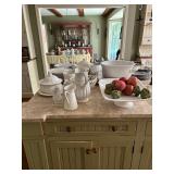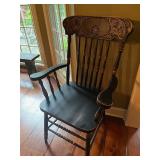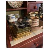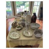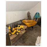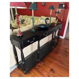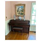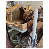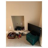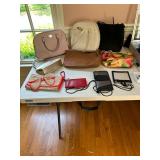 Painted secretary, corner shelf, sofa table, nail head sectional, burled curio, mahogany dresser & mirror, console piano, 3 piece bedroom set, nail head headboard, bakers rack, coffee & end tables, grandfather clock, office furniture, lots of decorative accent pieces, costume jewelry, shoes, bags, clothes, oils, prints, lots of bric-a-brac & kitware, collector plates, baskets, hurricane lamps, rugs, PS2's, PSP, Game Boy and lots of video games, action figures & other toys, kids kitchen, cradle, TV's, records, outdoor furniture, linens & more |