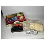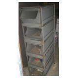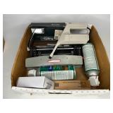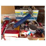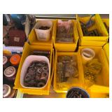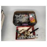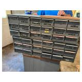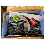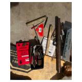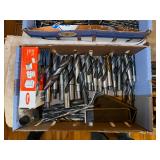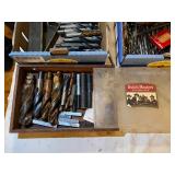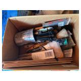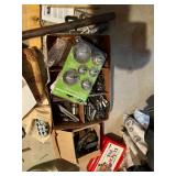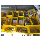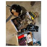 Tools · Black & Decker Firestorm drill · Compact air compressor · Finish nails & assorted hardware · Powersmith work light · Dremel Motoshop · Ratchet/socket set · Garage signs · Barn beam auger · Craftsman chop saw · 5-drawer hardware store metal storage locker · 10-drawer metal cabinet with lamp parts · David White transit · Grease gun · L A R G E lot stainless steel hardware – all kinds · Assorted paint supplies · Rope · Spool of gas & oil-resistant cable · Vintage Craftsman ratchet & socket set c. mid-1940s · PanaPress 1/4 ton arbor press in box · LARGE lot drill bits · Metal shelves · Parts sorting trays · Metal hardware drawers