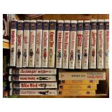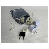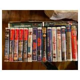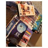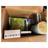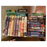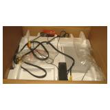 Electronics · RCA antenna · Lot CDs · Lot DVDs & Blu-Rays · RCA DVD player · Lot VHS tapes including set of Shirley Temple movies and many Disney · Electric outlet conversion set for international travel · HP Photosmart 375 photo printer NIB · Lot computer accessories · GE model 7-4100JA tombstone radio