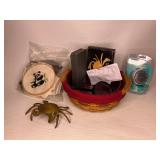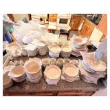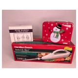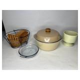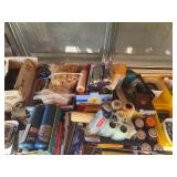 Household · Set of sheets · White blanket · Pots & pans · Pamela Gladding dishes · Rotating spice organizer · Metal decorator birds nests · H U G E lot crafting beads, many new in original packaging · Chair Gym exerciser · Wolfgang Puck stainless steel wok · Wolfgang Puck stainless steel buffet pan w/ lid · Lot Mason style canning jars in boxes · Soft side coolers · Panda throw blanket · Hamilton Beach electric knife · Lot beauty gadgets · Cameron’s Stovetop Smoker IOB · Assorted flatware · 4-qt. electric ice cream maker · Pampered Chef stoneware bar pan in box · Lot office supplies and gadgets