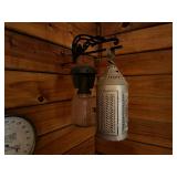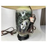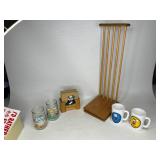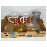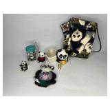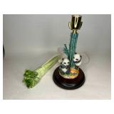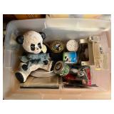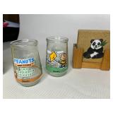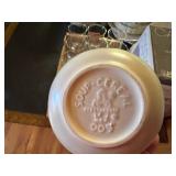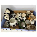 Glass, Crystal, Pottery & Ceramics · Lantern globes · Rose vase · Willow Ware Royal china · Lot assorted cups & saucers · Vintage salt cellars in box · Lafon mug with plated gold ring handle in box · Glass fruit & vegetables · Old bottles · Milk bottles · Lot panda figurines and banks · Lot 7UP soda bottles · Lenox Holiday Tartan Tree divided server · Disney coffee mugs · Lot kerosene & oil lamps · Pyrex · Ceramic French drip coffee maker · Peanuts character milk glass mugs · Vintage crystal ash tray with metal pedestal base · Ruckel’s Stoneware #2 crock · Blue band crock