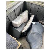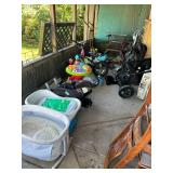 Trestle tables with 6 chairs, painted cabinet, curio, marble top Bombay chest, Asian cabinet, 3 piece sleigh bedroom set, small rolltop desk & chair, pair of velvet chairs, carved console, oval curio table, nail head bench, set of 8 grey upholstered dining room chairs, whitewashed curio cabinet, mahogany footed desk, bakers rack, MCM Brutalist style armoire, mica bedroom furniture, floral sofa & loveseat, leather reclining sofa, cherry TV stand, coffee & end tables, lots of decorative accent pieces, chandeliers and lamps, mirrors, bric-a-brac, costume jewelry, Harley t-shirts & accessories, helmets, men's and ladies clothing, accessories, wallets, lots of Dept. 56 houses, records, oil painting, prints & wall art, TV's, dolls, microwave, kitware, dishes, planters, kayak, canoe, fishing poles, outdoor table, tools, tractor, power saw, ladder, boat motors, tools & more! |