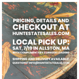The Hunt Continues! This collection packs a PUNCH! This is the New England home blond from Texas - - she possesses a taste that is truly magnificent in its breadth, and her palate is as broad as the Lone Star State. Every collection is a powerful story to tell, welcome to Knockout in Concord! This event is LIVE ONLINE at HuntEstateSales.com. #happyhunting LOCATION: VIRTUAL EVENT at HuntEstateSales.com SALE ENDS: Friday, 7/18 at 5PM COMPLIMENTARY LOADING: Saturday, 7/19 from 10AM to 3PM PICKUP LOCATION: Allston, MA ** the address will be issued after a purchase is made** Need delivery? Shipping? Want to check it out in person before buying? No problem! Contact us at 617-817-1178 or info@huntestatesales.com Want First Dibs? Join the Hunt! SIGN UP for our MAILING LIST to get early access and exclusive coupon codes. Welcome to a force of history and culture! Featuring true antiques, next to Eldred Wheeler and craftsman like J.L. Treharn & Co. and P. Kapela. It's a rare instance when reproduction antique furniture is more valuable than the authentic piece, this is it. Eldred Wheeler lowboy in figured maple with slate table top. Eldred Wheeler was formed in 1977 and with a mission to handcraft antique reproduction furniture to the same standards set by eighteenth century American craftsmen. Their store, in Hanover, Massachusetts shuttered in 2019, when the owners retired, but their craft will match their legacy, for decades to come. J.L. Treharn & Co., of Youngstown, Ohio Founder Jerry Treharn, used a blend of automation and skilled craftsmanship to produce some of the most sought- after 17th and 18th century replica chairs, tables, beds, chests and cupboards. This single drawer stand features craftsman design, stunning tiger maple, period style brass hardware and a cabriole leg and construction, including pegged joints. 18th century reproduction in Tiger Maple, made by Paul Kapela of Chatham Furniture Reproductions Inc. Flanked by stunning true antiques including: A Louis XVI Period 18th Century Bergere armchair A set of four Louis XVI 19th Century oval back painted chairs with leather seats A Parlor Chair with intricate fruitwood inlay depicting a chain of tulips at every surface, The chair frame and cheek velvet upholstery mirrors the intricate inlay with high design. Stand out art and accessories include: The Blue Vase, Oil on Canvas, by Ann Hardy, b. 1970. Landscape, Oil on Canvas, by B. Bauman, 2005 Autumn Landscape with Three Figures, Oil on Canvas, Singed Wall mounted vases featuring a gilt metal frame with scrolling handles and roaring lion head at base, holding a hand painted porcelain vase, with putti. 19th Century French terracotta olive oil jars A pair of early 20th Century gilt brass Altar candlestick holders The strong style continues including a collection of art, tableware, tables and chairs. Featuring: Phlox and Zinnias in a Blue Vase, oil on canvas, signed Porcelain Capodimonte style porcelain tea set by Van Schierholz Rosone by Arte Italica, handcrafted stoneware, made in Italy Nancy Calhoun dinnerware in Neptune Vintage water pitcher by Tiffany & Co Turned leg and twist farm tables, with sets of chairs including: Set of Six French Breton style rush seat chairs Early English Elm Wood Lancashire rush seat spindle back chairs, set of eight 19th century chairs from Lancashire, or Cheshire, districts of England featuring a triple row spindle back with back uprights flattened and curved to meet an eared crest rail. This event has an impact, from the Revolution to the Renaissance! Cityscape, Oil on Canvas, by Margaret Scoppa, 1998. Scoppa has been evolving her art for her lifetime. Margaret’s current focus is sculpture: bricolages of found and handmade objects. This piece is from her 2-dimensional earlier works. Three framed photographs by John David Geery, Vermont, titled Daybreak, Porch Light and Meredith. Seaweed, Oil on Canvas, Signed and Dated 1947, This pieces depicts a rocky coast with a red house in the background and seaweed at the foreground. Additional finds include: A suit of armor. Linens and throw pillows featuring Matouk bedding. Brass, bronze and gilt frames. A collection of Staffordshire pottery. Botanical prints from the Album Vilmorin, a famous collection of botanical illustrations, specifically titled "Album Vilmorin; Les Plantes Potagères", The Vegetable Garden. It originated as a series of illustrations commissioned by the Parisian seed company Vilmorin-Andrieux & Cie. A cow and a PIG! Unglazed Terracotta Pig, 24". Look at that face, he's incorrigible! Bringing home the message this collection is a tribute to an iconic style, that's larger than Texas! Welcome to Knockout in Concord! Join the Hunt! We're VIRTUAL, shop 24/7 online at HuntEstateSales.com. This event drops Thursday, July 3rd at 8AM! Happy Hunting, Maggie and Jim PS: If you've read this far, you deserve a COUPON CODE! Use KNOCKOUT10 to get 10% off your purchase at HuntEstateSales.com. |