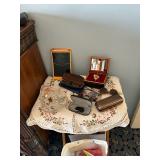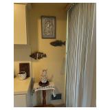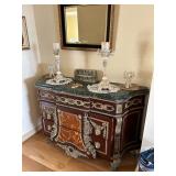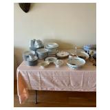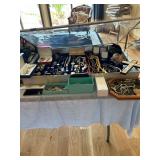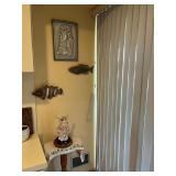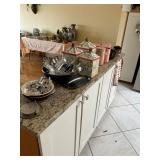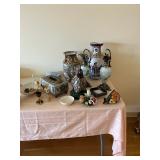 Lots of clothes, scarves, hats, bags, shoes & accessories, costume jewelry, watches, loads of books, Arabic Egyptian Orthodox Christian books, wood carving, bric-a-brac, collectibles, lots of religious icons, crystal, china, lots of kitware, small appliances, flatware, Christmas, luggage, flatscreens, Harmon Kardon sound system AVR-146, 4 poster 4 piece master bedroom set, brass & glass serving cart, ornate burled marble top chest, tufted sofa & loveseat and matching chair, assorted lamps, tables, chairs & lots of decorative accent pieces and lots more! |