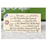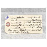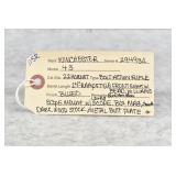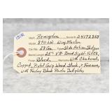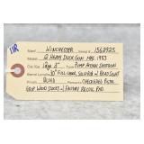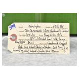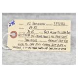 Firearms #1-235 To Be Sold at 1:00 PM (Approx.): 1R. Kimber of Oregon – Mod. 84 Sporter (Item #1270) – 223 Rem. Cal. Bolt Action Rifle – w/22” Barrel – Blued Finish – w/Checkered Capped Pistol Grip Wood Stock w/Factory Butt Plate – New & Unfired w/Factory Box 2R. Kimber of Oregon – Mod. 82 (Item #1220) – 22 Hornet Cal. Bolt Action Rifle – w/22” Barrel (No Sights) – Blued Finish – w/Deluxe Checkered Capped Pistol Grip Wood Stock w/Checkered Metal Butt Plate – w/Factory Detachable Magazine – w/Scope Mounting Rings – As New w/Factory Shipping Box & Manual 3R. Kimber of Oregon – Mod. 82 (Item #1251) – 22 WMR Cal. Bolt Action Rifle – w/22” Barrel – Blued Finish – w/Checkered Capped Pistol Grip Wood Stock w/Factory Butt Plate – w/Factory 4-Shot Mag – Unfired w/Factory Box 4R. Kimber of Oregon – Mod. 82 – 22 Long Rifle Cal. Bolt Action Rifle – w/22” Barrel – Blued Finish – w/Checkered Capped Pistol Grip Wood Stock w/Factory Butt Plate – w/Factory 5-Shot Mag – Unfired w/Factory Box 5R. Weatherby – Mod. Mark V “Friends of NRA” Edition – 300 Wby Mag. Cal. Bolt Action Rifle – w/26” Barrel – Matte Blued Finish – w/Checkered Pistol Grip Wood Stock w/Factory Recoil Pad – w/Gold Accented Sling Swivels & Etched Floor Plate – Gun Was the 1999 Gun of the Year & is #079/700 – Appears Unfired w/Factory Box 6R. Ruger – Mod. No. 1-A Light Sporter – 243 Win. Cal. Falling Block Single Shot Rifle – w/22” Barrel w/Beaded Front & Adj. Flip-Up Rear Checkered Capped Pistol Grip Wood Butt Stock & Factory Recoil Pad & Alexander Henry Forearm – w/Factory Box w/Factory Ruger Rings 7R. SKB – Mod. 1900 – 12ga. 3” Semi-Auto Shotgun – w/28” Vent-Rib Barrel w/Bead Sight (Interchangeable Chokes) – Blued Finish – w/Duck Unlimited Etched Receiver – w/Checkered Capped Highly Figured Pistol Grip Wood Stocks w/Factory Recoil Pad – Gun is Unfired w/Factory Box & Manual 8R. Nikko Arms – Mod. Shadow M707 – 12ga. 2 ¾” Over-Under Shotgun – w/30” Imp. Mod. & Full Choke, Airflow Extra Wide Vent-Rib Barrels w/Dual Bead Sights – Blued Finish – w/Checkered Capped Pistol Grip Wood Stocks w/Pachmayr Recoil Pad – New & Unfired w/Factory Box 9R. Winchester – Mod. 101 – 20ga. 3” Over-Under Shotgun – w/28” Full & Mod. Choked, Vent-Rib Barrel w/Dual Bead Sights – Blued Finish – w/Checkered Capped Pistol Grip Wood Stocks w/Pachmayr Recoil Pad – w/Single Select Trigger 10R. Browning (Belgium) – Mod. A-5 Light Twelve – 12ga. 2 ¾” Semi-Auto Shotgun – w/28” Mod. Choke, Vent-Rib Barrel w/Bead Sight – Blued Finish – w/Checkered Pistol Grip Wood Stocks w/Factory Butt Plate 11R. Winchester – Mod. 12 Heavy Duck Gun – 12ga. 3” Pump Action Shotgun – w/30” Full Choke, Solid Rib Barrel w/Bead Sight – Blued Finish – w/Checkered Pistol Grip Wood Stocks w/Factory Red Recoil Pad – Mfg. 1953 12R. Remington – Mod. Sportsman 58 – 12ga. 2 ¾” Semi-Auto Shotgun – w/30” Full Choke, Vent-Rib Barrel w/Bead Sight – Blued Finish – w/Highly Figured Checkered Capped Pistol Grip Wood Stocks w/Factory Butt Plate 13R. Remington – Mod. 11-48 – 410ga. 3” Semi-Auto Shotgun – w/25” Skeet Choked, Vent-Rib Barrel w/Dual Beads – Blued Finish – w/Checkered Capped Pistol Grip Wood Stocks w/Factory Butt Plate 14R. Remington – Mod. 870 Wingmaster – 12ga. 2 ¾” Pump Action Shotgun – w/30” Full Choke, Vent-Rib Barrel w/Dual Bead Sights – Blued Finish – w/Checkered Capped Pistol Grip Wood Stocks w/Factory Recoil Pad 15R. Remington – Mod. 870 Wingmaster Magnum – 12ga. 3” Pump Action Shotgun – w/30” Full Choke, Vent-Rib Barrel w/Dual Bead Sights – Blued Finish – w/Checkered Capped Pistol Grip Wood Stocks w/Factory Recoil Pad 16R. Winchester – Mod. 12 Riot Gun – 12ga. 2 ¾” Pump Action Shotgun – w/20” Cyl. Choke Barrel w/Shotgun Bead Sight – Blued Finish – w/Pistol Grip Wood Butt Stock w/Factory Butt Plate & Factory Ribbed Forearm 17R. Ruger – Mod. 77/22 – 22 Long Rifle Cal. Bolt Action Rifle – w/20” Barrel – Blued Finish – w/Checkered Capped Pistol Grip Wood Stock w/Factory Butt Plate – w/Factory Mag – As New w/Factory Box 18R. Winchester – Mod. 94 (Post-64) – 44 Mag. Cal. Lever Action Rifle – w/20” Barrel w/Hooded Front & Buckhorn Adj. Rear Sights – Blued Finish – w/Straight Grip Wood Stocks w/Factory Metal Butt Plate 19R. Winchester – Mod. 94 (Pre-64) – 30-30 Win. Cal. Lever Action Rifle – w/20” Barrel w/Hooded Front & Adj. Buckhorn Rear Sights – Blued Finish – w/Straight Grip Wood Stocks w/Factory Metal Butt Plate – Mfg. 1961 20R. Marlin – Mod. 336SC – 35 Rem. Cal. Lever Action Rifle – w/20” JM Stamped Barrel w/Beaded Front & Sporting Rear Sights – Blued Finish – w/Pistol Grip Wood Stocks w/Factory Butt Plate 21R. Marlin – Mod. 883 SS – 22 WMR Cal. Bolt Action Rifle – w/22” Barrel w/Hooded Front & Adj. Buckhorn Rear Sights – Stainless Finish – w/Pistol Grip Brown Laminated Wood Stock w/Factory Recoil Pad & NRA Medallion on Right Side of Stock – w/Tubular Magazine – Unfired 22R. A.H. Fox (Phila.) – Mod. Sterlingworth – 16ga. Double Barrel Shotgun – w/26” Solid Rib Barrel w/Bead Sight – Blued Finish w/Case Hardened Receiver – w/Checkered Capped Pistol Grip Wood Stocks w/Factory Butt Plate – w/Double Triggers 23R. Remington – Mod. 722 – 222 Rem. Cal. Bolt Action Rifle – w/26” Barrel w/Factory Sights – Blued Finish – w/Factory Smooth Pistol Grip Wood Stock w/Checkered Aluminum Butt Plate – w/Period Weaver K-8 Scope w/Front AO – w/Weaver Rings & Mounting Bases – Mfg. 10-1951 24R. Remington – Mod. 725 – 244 Rem. Cal. Bolt Action Rifle – w/22” Barrel w/Ramp Blade Front Sight & Rear Sight Provisions – Blued Finish – w/Checkered Capped Pistol Grip Wood Stock w/Checkered Aluminum Butt Plate – w/Leather Sling – w/Redfield Scope Rings & Mounting