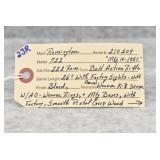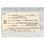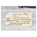 Firearms #236-507 To Be Sold at 10:00 AM (Approx.): 236R. Savage-Fox – Mod. B-C – 410ga. Double Barrel Shotgun – w/26” Vent-Rib Barrels w/Double Bead Sights – Blued Finish w/Case Hardened Receiver – w/Checkered Capped Pistol Grip Wood Stock w/Factory Butt Plate & Beavertail Forearm – w/Double Triggers 237R. Beretta – Mod. 409 Silver Hawk – 12ga. Hammerless Double Barrel Shotgun – w/28” Full/IM Choked, Solid Rib Barrels w/Single Bead Sight – Blued Finish w/Silver Receiver – w/Engraved Silver Frame on All Sides w/Scrolling & Floral Patterns – w/Deluxe Checkered Capped Pistol Grip Wood Stock w/Factory Butt Plate & Beavertail Forearm 238R. Winchester – Mod. 1890 Takedown – 22 Short Cal. Pump Action Rifle – w/24” Octagon Barrel w/Factory Sight & ¾ Length Tubular Magazine – Blued/Brown Finish – w/Straight Grip Wood Stock & Ribbed Forearm w/Crescent Metal Butt Plate – Mfg. 1911 239R. Winchester – Mod. 24 – 20ga. Double Barrel Shotgun – w/26” Mod./Mod. Choked, Solid Rib Barrels w/Front Bead Sight – Blued/Gray Finish – w/Pistol Grip Wood Stocks w/Factory Butt Plate – Mfg. 1949 240R. Winchester – Mod. 94 (Pre-64) – 32 Win. Spl. Cal. Lever Action Rifle – w/20” Barrel w/Blade Front & Adj. Rear Sights w/Full Length Tubular Magazine – Blued Finish – w/Straight Grip Wood Stocks w/Factory Checkered Metal Butt Plate – Mfg. 1952 241R. J. Stevens Arms – Mod. 240 – 410ga. 3” Over-Under Shotgun – w/26” Full/Full Choked Barrels w/Ivory Like Bead Front Sight – Blued Finish w/Case Hardened Receiver – w/Checkered Capped Pistol Grip Tenite Stocks w/Factory Butt Plate – w/Split Hammers – w/Double Triggers 242R. Savage – Mod. 29 – 22 Cal. Pump Action Rifle – w/24” Octagon Barrel w/Factory Sights & ¾ Length Tubular Magazine – Blued Finish – w/Smooth Pistol Grip Wood Stock & Ribbed Forearm w/Factory Butt Plate 243R. Marlin – Mod. 38 Takedown – 22 Cal. Pump Action Rifle – w/24” Octagon Barrel w/Factory Sights & 2/3 Length Tubular Magazine – Blued Finish – w/Pistol Grip Wood Stock & Ribbed Forearm w/Factory Hard Rubber Butt Plate 244R. J. Stevens – Mod. 1913 Patent – 410ga./12mm Single Barrel Shotgun – w/26” IM Choked, Barrel w/Bead Sight – Blued Finish – w/Round Knob Pistol Grip Wood Stocks w/Hard Rubber Butt Plate 245R. Remington – Mod. 14 ½ – 44 Rem./44 WCF Cal. Pump Action Rifle – w/22 ½” Barrel w/Factory Sights & Tubular Magazine – Blued Finish – w/Pistol Grip Wood Stock & Ribbed Forearm w/UMC Metal Butt Plate – Note: Magazine Tube Shortened 246R. Remington – Mod. 10A – 12ga. Pump Action Shotgun – w/30” Full Choke Barrel w/Bead Sight – Blued Finish – w/Smooth Pistol Grip Wood Stock & Ribbed Forearm w/Factory Butt Plate – Mfg. Between 1911-1929 247R. Parker Ballard by Eibar – Mod. Hammerless Double-Point Best – 410ga. Double Barrel Shotgun – w/28” Full/IM Choked, Solid Rib Barrels w/Bead Sight – Blued Finish w/Case Hardened Receiver – w/Checkered Caped Pistol Grip Wood Stock & Beavertail Forearm w/Butt Pad 248R. Hunter Arms – Mod. The Fulton – 20ga. Double Barrel Shotgun – w/26” Full/IM Choked, Solid Rib Barrels w/Bead Sight – Blued Finish w/Case Hardened Receiver – w/Checkered Round Knob Pistol Grip Wood Stocks w/Factory Butt Plate 249R. J. Stevens Arms – Mod. 1915 Favorite – 25 Stevens Cal. Falling Block Rifle – w/24” Octagon Barrel w/Factory Sights – Blued Finish – w/Straight Grip Wood Stocks w/Factory Butt Plate 250R. Browning – Mod. B S/S – 12ga. Hammerless Double Barrel Shotgun – w/28” Full & Mod. Choked, Solid Rib Barrels w/Bead Sight – Blued Finish – w/Engraveed Frame on All Sides w/Factory Floral Scrolling – w/Deluxe Checkered Pistol Grip Wood Stock & Beavertail Forearm w/Factory Butt Plate – w/Single Non-Selective Trigger 251R. Remington – Mod. 1900 – 12ga. Hammerless Double Barrel Shotgun – w/30” Mod./Cyl. Choked, Solid Rib Barrels w/Bead Sight – Blued Finish – w/Checkered Round Knob Pistol Grip Wood Stocks & Tru-Sport Period Butt Pad 252R. Ithaca – Mod. 37 – 20ga. Pump Action Shotgun – w/26” Mod. Choke Barrel w/Bead Sight – Blued Finish – w/Enhanced Receiver on Both Side w/Hunting & Wildfowl Scenes – w/Checkered Capped Pistol Grip Wood Stocks w/Factory Butt Plate 253R. Remington – Pre-Model-11 Brownings Patent – 12ga. Semi-Auto Shotgun – w/28” Cyl. Bore Barrel w/Bead Sight – Blued Finish – w/Round Knob Pistol Grip Wood Stocks w/Factory Hard Butt Plate 254R. High Standard – Mod. Flight King – 410ga. 3” Pump Action Shotgun – w/26” Full Choke, Vent-Rib Barrel w/Double Bead Sight – Blued Finish – w/Checkered Capped Pistol Grip Wood Stocks w/Factory Butt Plate 255R. Marlin – Mod. 94 – 38-40 WCF Cal. Lever Action Rifle – w/24” Round Barrel w/Blade Front & Adj. Rear Sights w/Full Length Tubular Magazine – Blued Finish w/Traces of Case Hardening – w/Straight Grip Wood Stock & Capped Forearm w/Carbine Metal Butt Plate – w/Sling Loops 256R. Stevens – Mod. 5100 – 12ga. Double Barrel Shotgun – w/30” Full/IM Choked Solid Rib Barrels w/Double Bead Sights – Blued Finish w/Case Hardened Receiver – w/Checkered Pistol Grip Wood Stocks w/Factory Butt Plate 257R. Springfield-Stevens – Mod. 315 – 20ga. Double Barrel Shotgun – w/26” Mod & IC Choked, Solid Rib Barrels – Blued Finish w/Case Hardened Receiver – w/Capped Pistol Grip Wood Stocks w/Tru Sport Period Butt Pad 258R. Remington – Mod. 31 – 20ga. Pump Action Shotgun – w/26” Full Choke Barrel w/Bead Sight – Blued Finish – w/Smooth Pistol Grip Wood Stock & Ribbed Forearm w/Factory Brown Wood Like Butt Plate 259R. Stevens-Browning – Mod. 620 – 16ga. Pump Action Shotgun – w/26” Mod. Choked Barrel w/Bead Sight – Blued Finish – w/Checkered Capped Pistol Grip Wood Stocks w/Factory Butt Plate 260R. Springfield-Stevens – Mod. 5100 – 410ga. 3” Double Barrel 