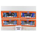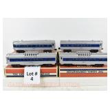 4 Postwar Lionel O Gauge: (2) 2412, 2414, 2416 Santa Fe Blue Stripe Passenger Cars W/Repro Boxes