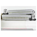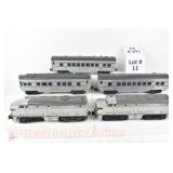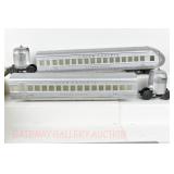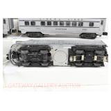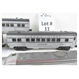 11 Postwar Lionel O Gauge: Passenger Train: 2023 Two Tone Gray UP Alco AA Diesels, 2421 Maplewood, 2422 Chatham (Scratch On One Side), 2423 Hillside Passenger Cars No Box