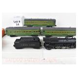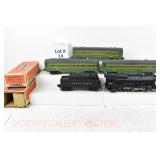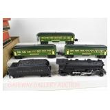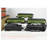 14 Postwar Lionel O Gauge: 1948 1430S Set Components: 2025/6466WX Loco/Tender OB Flaps Missing, No Insert For Tender: Green/Gray Coaches 2400 Maplewood, 2401 Hillside, 2402 Chatham No Boxes
