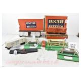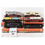 24 Postwar Lionel O Gauge: 6430 Trailer Flatcar/Black Labels On Trailers, 6430 Trailer Flatcar/Silver Labels On Trailers, 6456 Black LV Hopper, 6462 NYC Gondola, 6801 Flat Car/Boat HULL ONLY, 6424 Automobile Flatcar/2 Autos OB