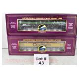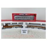 35 MTH O Gauge: 20-98404 2 Pack Diff #’s Burlington Northern Corrugated Auto Carriers Factory Sealed OB