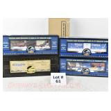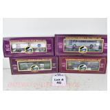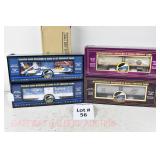 48 MTH O Gauge: (3) Tank Cars: 20-96020 NASA, 90029D Canadian National, 96021 McDonald’s; 98163 Union Pacific Flatcar/Greyhound San Francisco Die Cast Bus OB