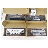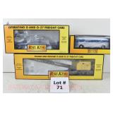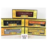 310 Rail King O Gauge: 30-72118 LV Gondola/Junk Load, RK-7807L Union Pacific Reefer, 75348 PRR PS-2 Covered Hopper, RK-7506L N&W Hopper/Load, 75186 Great Northern Hopper/Coal Load