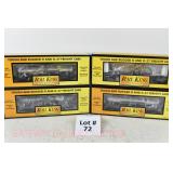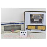 72 Rail King O Gauge: RK-7606L MTH Line Flat/Ertl Backhoe; (3) Tank Cars; 7376 Borden’s, 7330 Breyer’s, 7379 Texaco OB