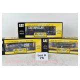 76 Rail King O Gauge: Caterpillar Rolling Stock: 30-7337 Tank Car, 7697 Flat Car/Cat Trailer, 7698 Flatcar/Billboard OB