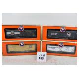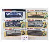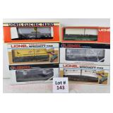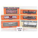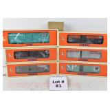 81 Modern Lionel O Gauge: (6) Boxcars: 19291 Great Northern, 29202 Santa Fe OB/Mailing Carton, 19290 Seaboard Silver Meteor, 19284 Northern Pacific, 19283 Erie, 17225 Penn Central OB