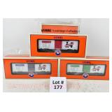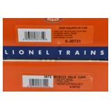 87 Modern Lionel O Gauge: (3) Milk Cars: 17332 Pfaudler, 17373 New York Central, 1733 Railway Express OB