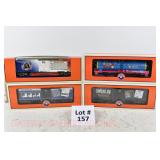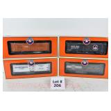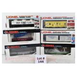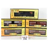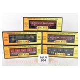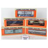 88 Modern Lionel O Gauge: 19272 6464 Boxcar Series #4; SP, PRR, State Of Maine;19292 6464 Boxcar Series VI; MKT, B&O Timesaver, New Haven OB And Set Box